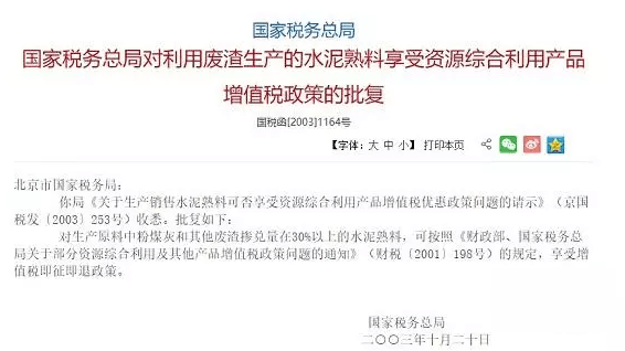 根據(jù)中國水泥網(wǎng)信息中心消息,10月24日,國家稅務總局發(fā)布了《國家稅務總局對利用廢渣生產(chǎn)的水泥熟料享受資源綜合利用產(chǎn)品增值稅政策的批復》,文內批復表示,對生產(chǎn)原料中粉煤灰和其他廢渣摻兌量在30%以上的水泥熟料,可按照《財政部、國家稅務總局關于部分資源綜合利用及其他產(chǎn)品增值稅政策問題的通知》(財稅〔2001〕198號)的規(guī)定,享受增值稅即征即退政策。