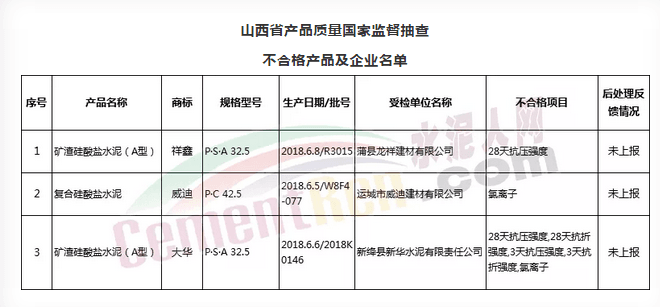 不合格產(chǎn)品生產(chǎn)企業(yè)分別是蒲縣龍祥建材有限公司、運(yùn)城市威迪建材有限公司和新絳縣新華水泥有限責(zé)任公司。