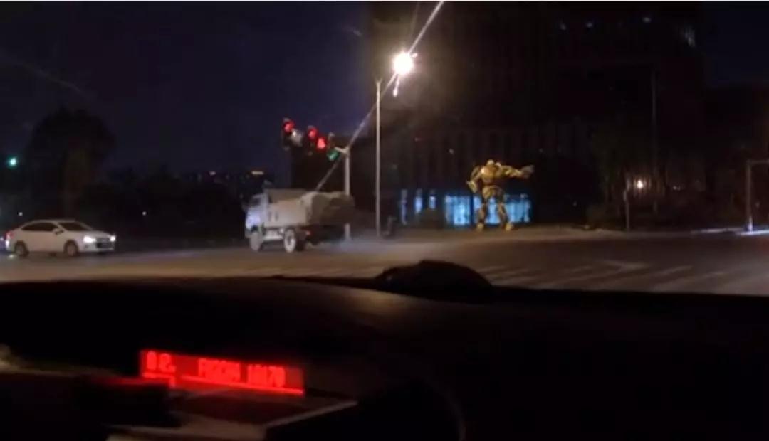 一輛運(yùn)送假水泥的藍(lán)色貨車瘋狂闖紅燈、逆行。