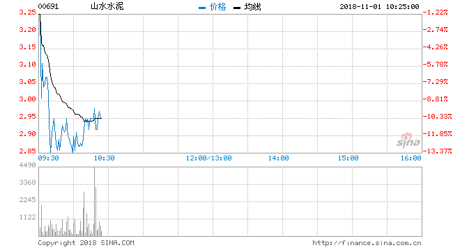 陷入股權(quán)斗爭的山水水泥,停牌三年后于昨日終于復(fù)牌,復(fù)牌后隨即爆跌五成至3.15元,今日股價再度尋底,股份今早平開3.29元后繼續(xù)被拋售,并一度低見2.85元,跌13.37%。