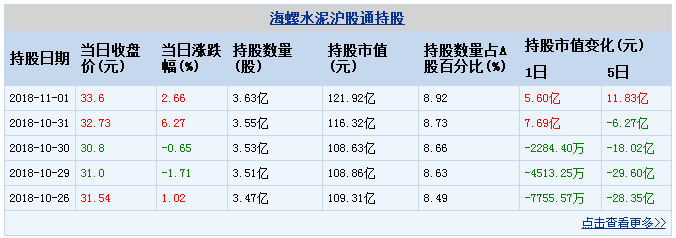 11月01日海螺水泥滬股通持股明細(xì)如下: