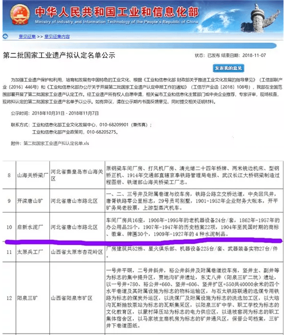 近日,工信部為加強工業(yè)遺產(chǎn)保護和利用,培育和發(fā)展有中國特色的工業(yè)文化,在全國范圍部署開展了第二批國家工業(yè)遺產(chǎn)認定工作。水泥行業(yè),啟新水泥廠成功入選了第二批國家工業(yè)遺產(chǎn)擬認定名單。公示時間為2018年10月31日至2018年11月7日。