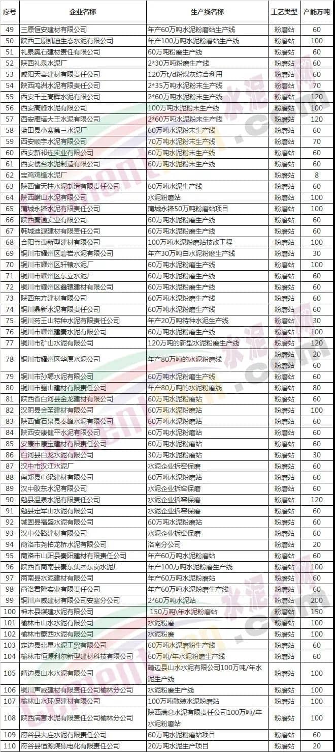 陜西省水泥企業(yè)名單