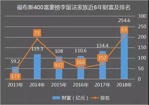 李留法家族自2013年入圍福布斯年度400富豪榜以來,每年都榜上有名,家族財(cái)富已經(jīng)從2013年首次上榜時(shí)的59.2億元增長了近200億元。