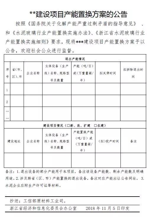 浙江省水泥玻璃行業(yè)產(chǎn)能置換實(shí)施細(xì)則