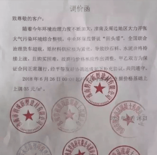 淮南,安徽省下轄地級(jí)市,位于安徽省中北部,地處長(zhǎng)江三角洲腹地,淮河之濱,素有“中州咽喉,江南屏障”之稱(chēng),是沿淮城市群的重要節(jié)點(diǎn),合肥都市圈核心城市。即使有這樣的優(yōu)越地理?xiàng)l件,在中央環(huán)保監(jiān)督下,全國(guó)聯(lián)合治理貨車(chē)超載中,當(dāng)?shù)厣笆⑺鄡r(jià)格依然持續(xù)上漲,且購(gòu)買(mǎi)困難,當(dāng)?shù)仨牌鬄榱吮苊鈵盒愿?jìng)爭(zhēng),保證混凝土質(zhì)量,所有混凝土在原價(jià)格基礎(chǔ)上上調(diào)35元/方。