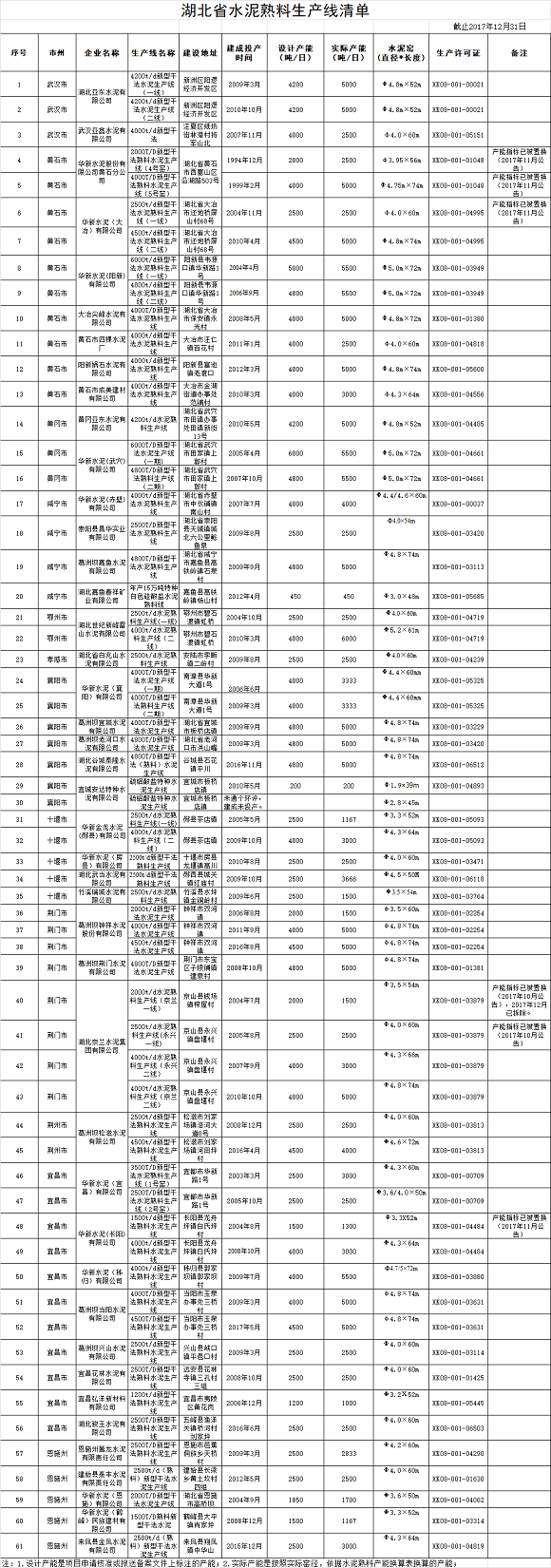 根據(jù)中國(guó)水泥網(wǎng)信息中心消息,11月5日,湖北省經(jīng)信委發(fā)布了《省經(jīng)信委關(guān)于全省水泥熟料和平板玻璃生產(chǎn)線清單的公示》。根據(jù)工業(yè)和信息化部辦公廳和國(guó)家發(fā)展改革委辦公廳《關(guān)于嚴(yán)肅產(chǎn)能置換嚴(yán)禁水泥平板玻璃行業(yè)新增產(chǎn)能的通知》(工信廳聯(lián)原[2018]57號(hào))及工信部《關(guān)于更新并公開水泥平板玻璃生產(chǎn)線清單的函》(工信函[2018]382號(hào))的有關(guān)要求,我委組織開展了水泥熟料、平板玻璃生產(chǎn)線清單更新工作?,F(xiàn)將我省更新的水泥熟料、平板玻璃生產(chǎn)線清單予以公示。清單內(nèi)顯示共61條水泥熟料生產(chǎn)線。
