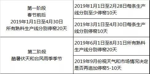 錯峰生產(chǎn)時間安排: 全年計劃錯峰生產(chǎn)停窯40天/窯,分兩階段進行。
