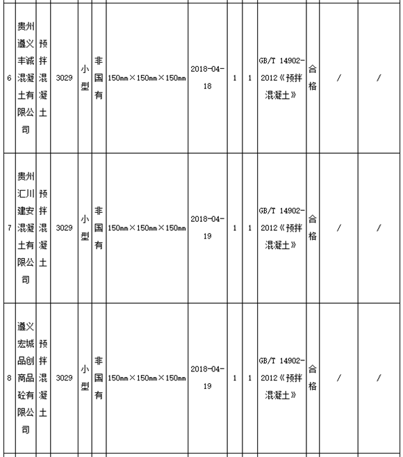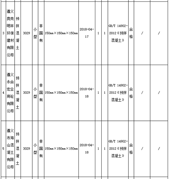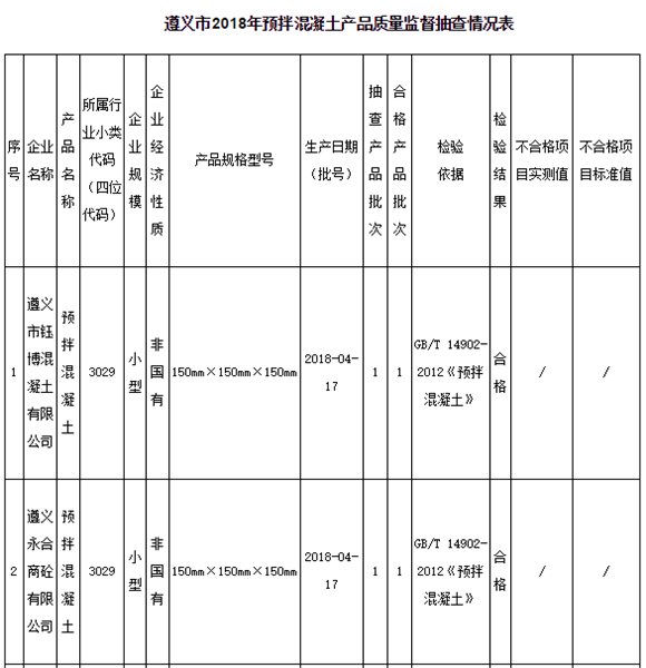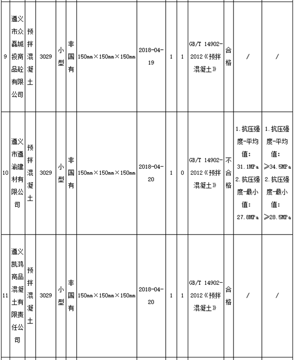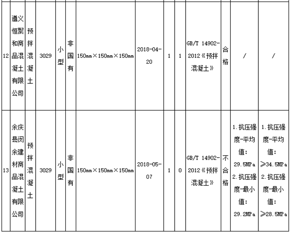11月8日,貴州遵義市市場監(jiān)管局官網(wǎng)發(fā)布通告稱,為進(jìn)一步加大遵義市工業(yè)產(chǎn)品質(zhì)量監(jiān)督力度,確保產(chǎn)品質(zhì)量安全,近期組織對全市13家生產(chǎn)預(yù)拌混凝土企業(yè)共13個(gè)批次產(chǎn)品進(jìn)行抽檢。13家企業(yè)11批次產(chǎn)品合格,2批次產(chǎn)品不合格,合格率為84.6%。