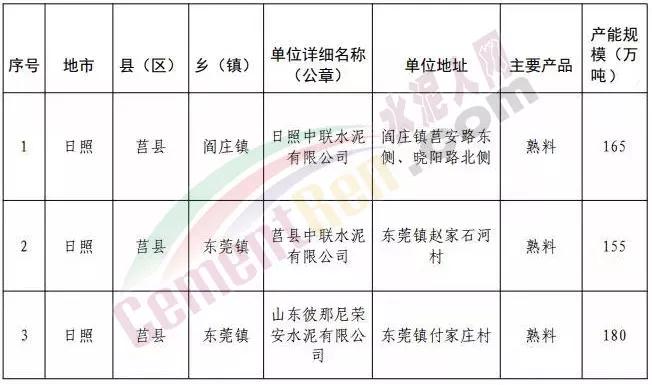 日照市主要熟料生產(chǎn)企業(yè)