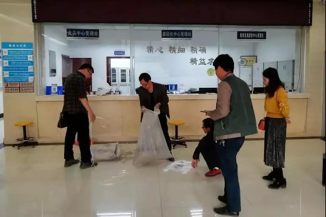 消費(fèi)者邀請(qǐng)四川省長(zhǎng)寧縣質(zhì)監(jiān)局 一起送檢(記者 楊春 攝)