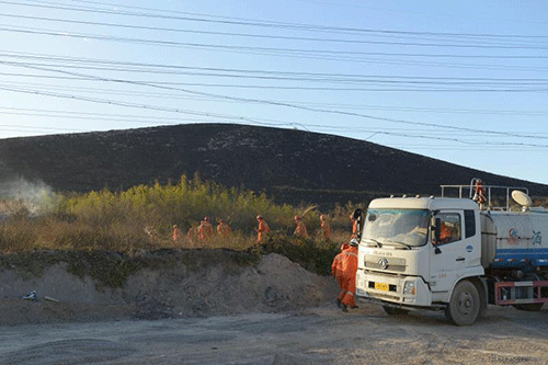 10月27日下午,邢郭鎮(zhèn)王家洞村山上出現(xiàn)明火。大火借助風(fēng)勢(shì),火焰迅速蔓延,給周邊的村民人身財(cái)產(chǎn)安全帶來(lái)極大隱患?;鹎榫褪敲睿澔式鹩绻镜谝粫r(shí)間啟動(dòng)消防應(yīng)急預(yù)案,并通過(guò)微信群、電話等方式通報(bào)火情,呼吁大家滅火。同時(shí)調(diào)度部署辦公室灑水車緊急戒備、隨時(shí)待命。