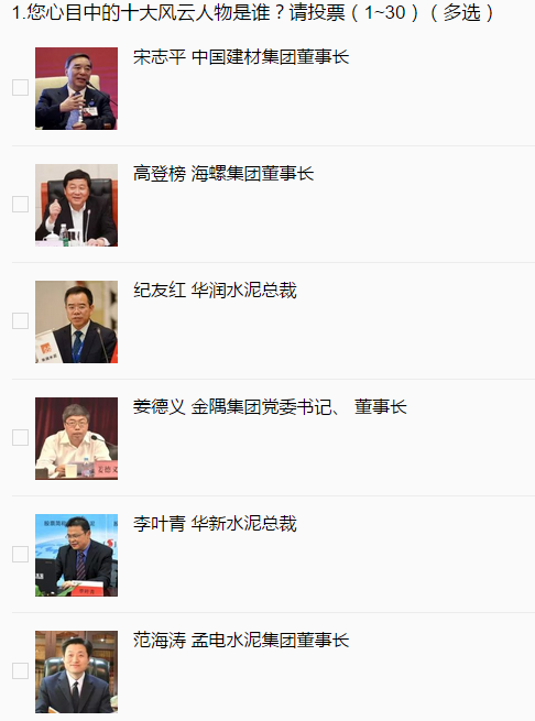 2018水泥行業(yè)風(fēng)云人物評選