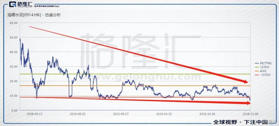 過去十年,海螺水泥的估值情況如下圖: