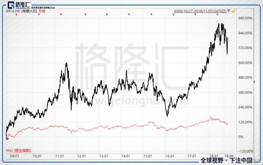 但是,很難有人想象,一只股票在估值的大方向向下的背景下,居然也實現(xiàn)了10倍的漲幅,這只股票是海螺水泥。