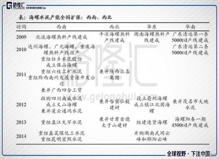 從2009年開始,南部區(qū)域房地產(chǎn)開發(fā)投資增速開始發(fā)力,公司具有戰(zhàn)略前瞻性,沒有偏安一隅,提前進軍南部區(qū)域和中部區(qū)域,為海螺水泥利潤貢獻很大。