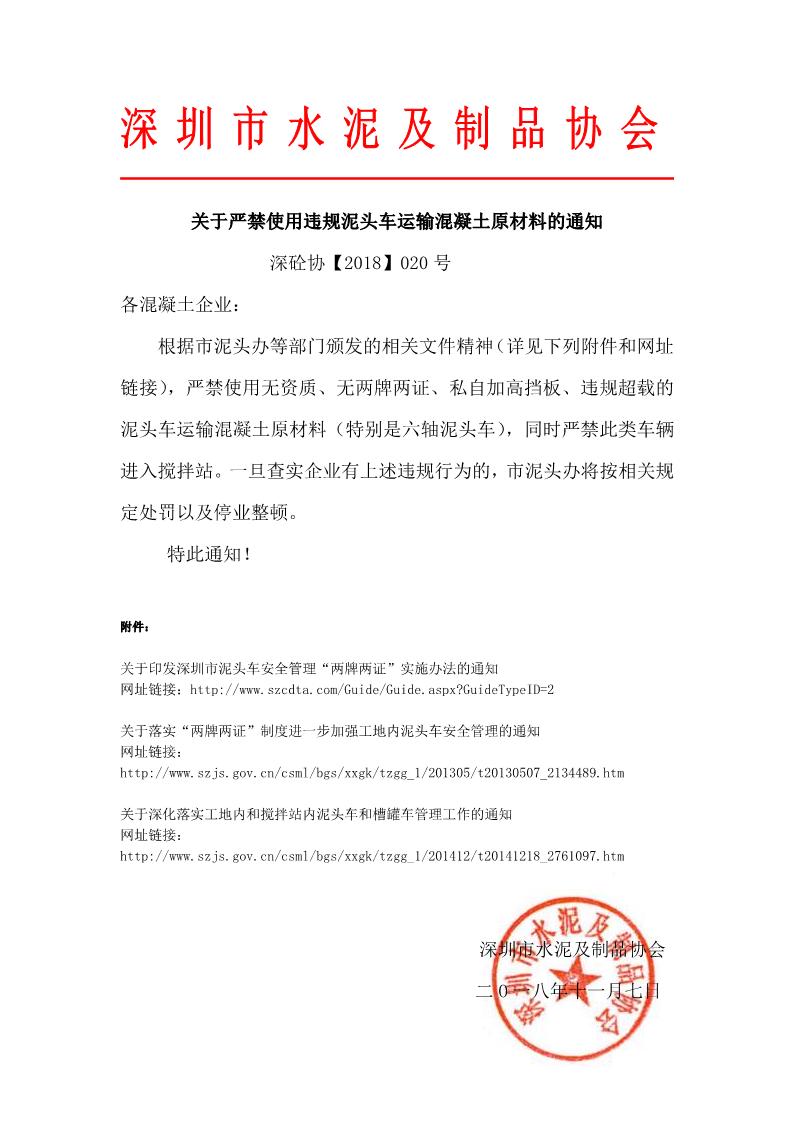 近日,深圳市水泥及制品協(xié)會(huì)發(fā)布《關(guān)于嚴(yán)禁使用違規(guī)泥頭車運(yùn)輸混凝土原材料的通知》,嚴(yán)禁使用無(wú)資質(zhì)、無(wú)兩牌兩證、私自加高檔板、違規(guī)超載的泥頭車運(yùn)輸混凝土原材料(特別是六軸泥頭車),同時(shí)嚴(yán)禁此類車輛進(jìn)入攪拌站。