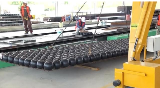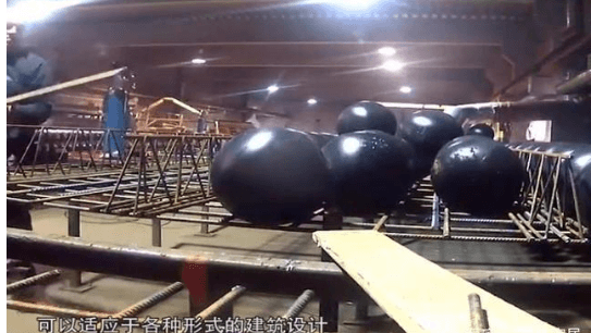 如此一來,減少了混凝土的用量,1kg的小黑球可替代100kg的混凝土。更減少了結(jié)構(gòu)自重,延長了建筑物的使用壽命。還增強了混凝土和黑球之間的強度,使房屋的壽命更長。