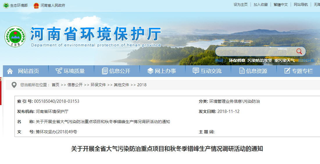 河南省污染防治攻堅戰(zhàn)領(lǐng)導小組辦公室 2018年11月9日印發(fā)