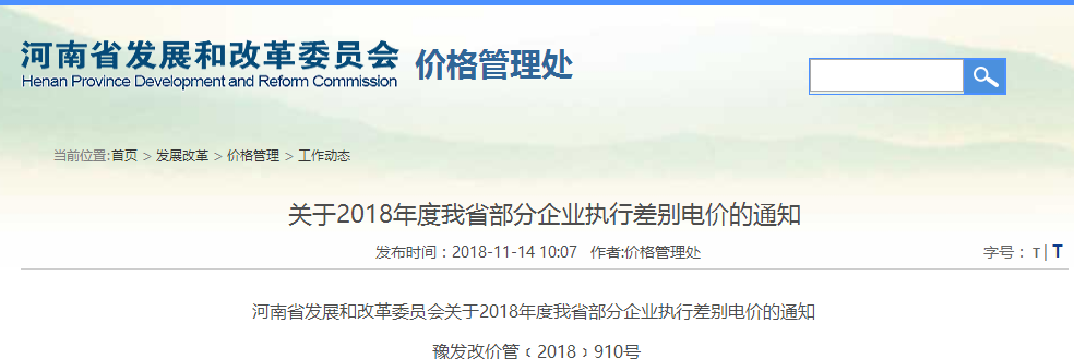 五、各地價(jià)格主管部門要會同有關(guān)部門按照省政府辦公廳《關(guān)于完善差別化電價(jià)政策的通知》(豫政辦明電〔2018〕99號)等文件要求,加強(qiáng)對差別化電價(jià)的核查、執(zhí)行和監(jiān)督檢查,確保差別化電價(jià)政策落實(shí)到位。省電力公司要將本次差別電價(jià)執(zhí)行情況于2019年2月底前報(bào)送我委(價(jià)管處)。