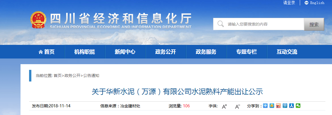 按照《國務(wù)院關(guān)于化解產(chǎn)能嚴(yán)重過剩矛盾的指導(dǎo)意見》(國發(fā)〔2013〕41號)、《國務(wù)院辦公廳關(guān)于促進(jìn)建材工業(yè)穩(wěn)增長調(diào)結(jié)構(gòu)增效益的指導(dǎo)意見》(國辦發(fā)〔2016〕34號)、《工業(yè)和信息化部關(guān)于印發(fā)鋼鐵水泥玻璃行業(yè)產(chǎn)能置換實(shí)施辦法的通知》(工信部產(chǎn)業(yè)〔2017〕337號)精神,現(xiàn)將華新水泥(萬源)有限公司水泥熟料產(chǎn)能異地置換情況進(jìn)行公示,歡迎社會公眾進(jìn)行監(jiān)督。公示期為2018年11月14日至11月18日,公示期5天。如有異議,請于公示期內(nèi)向我廳冶金建材處反饋。