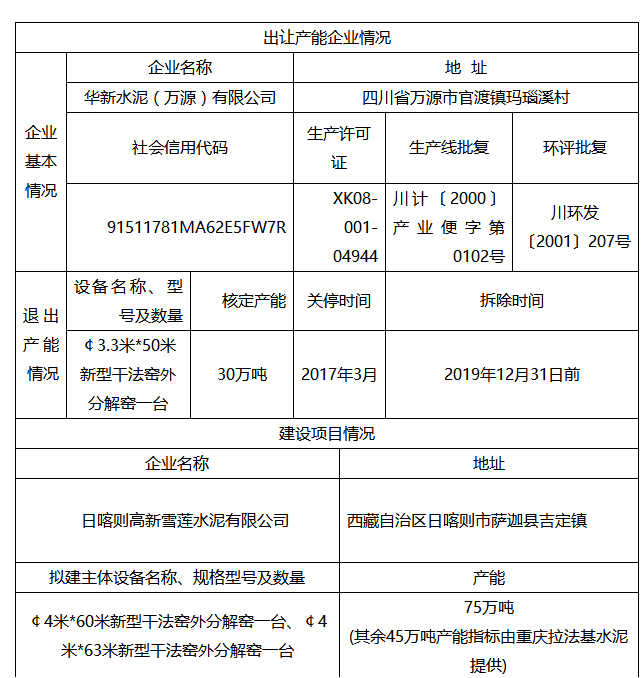附件:華新水泥(萬源)有限公司水泥熟料產(chǎn)能置換方案