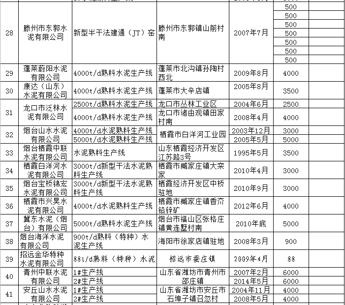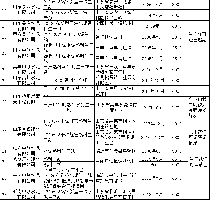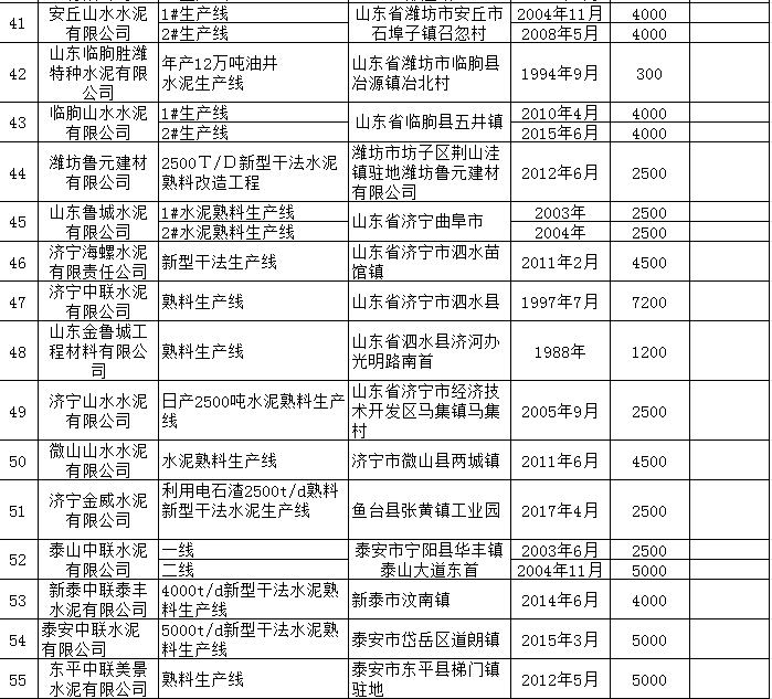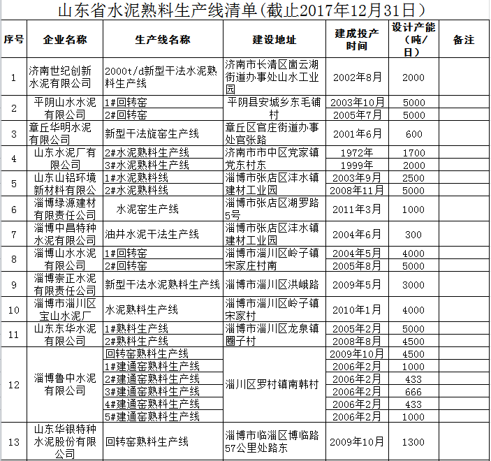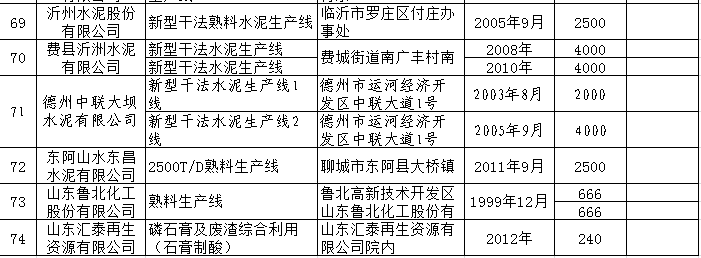 附件:山東省水泥熟料、平板玻璃生產(chǎn)線清單.xls
