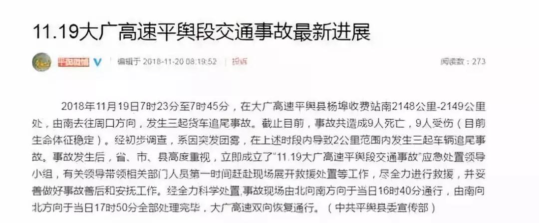 經(jīng)初步調(diào)查,因突發(fā)團霧,在上述時段內(nèi)導致2公里范圍內(nèi)發(fā)生3起車輛追尾事故。