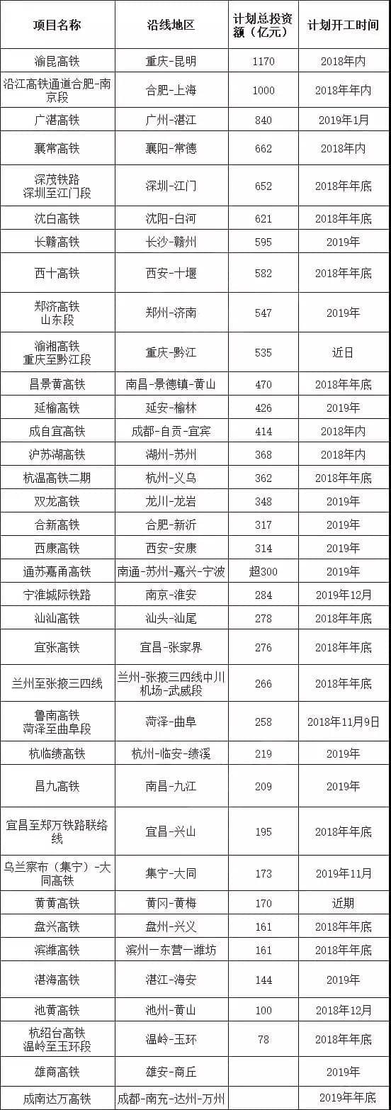 下半年以來,國家發(fā)改委已經(jīng)批復(fù)了包頭至銀川鐵路銀川至惠農(nóng)段、上海經(jīng)蘇州至湖州段、重慶至黔江等三個高鐵項目(后兩個項目計劃于2018年年內(nèi)開工)可研報告,總里程529.14公里,總投資1031.65億元。