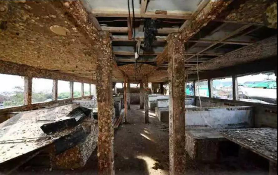 時隔4個半月重見天日的“鳳凰號”殘破不堪??拷恚还筛舻男葰庥鎿鋪?,即使戴上口罩仍然難以阻擋那股刺鼻的咸濕味道。由于在海底長期浸泡,“鳳凰號”整艘船被海洋微生物覆蓋,看起來滿目蒼夷。