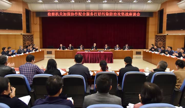11月22日,最高人民檢察院召開檢察機關加強協(xié)作配合服務打好污染防治攻堅戰(zhàn)座談會。