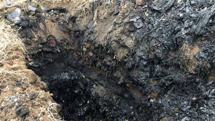 督察發(fā)現(xiàn),該非法填埋場(chǎng)長(zhǎng)400余米,寬約60米,深度在10米以上,填埋量達(dá)20萬(wàn)立方米左右,不僅填埋了大量生活垃圾,還混雜填埋醫(yī)療廢物和工業(yè)危險(xiǎn)廢物。2018年11月15日,督察組隨機(jī)選取7個(gè)點(diǎn)位進(jìn)行挖掘,發(fā)現(xiàn)填埋物多呈黑褐色,并伴有強(qiáng)烈刺鼻氣味。經(jīng)專(zhuān)業(yè)機(jī)構(gòu)取樣鑒別,因生活垃圾與危險(xiǎn)廢物混雜填埋,填埋的廢物均具有危險(xiǎn)廢物特性。