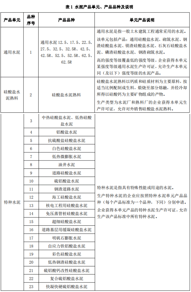 本細(xì)則規(guī)定的水泥產(chǎn)品劃分為3個產(chǎn)品單元,23個產(chǎn)品品種。水泥產(chǎn)品單元劃分見表1。