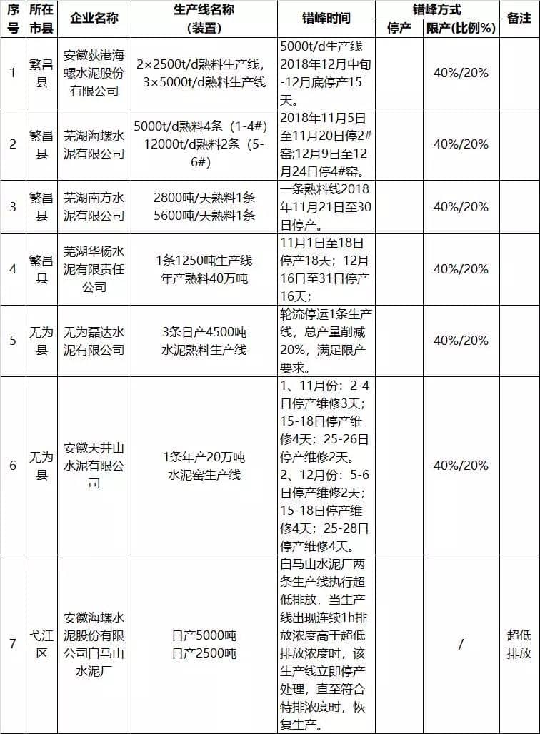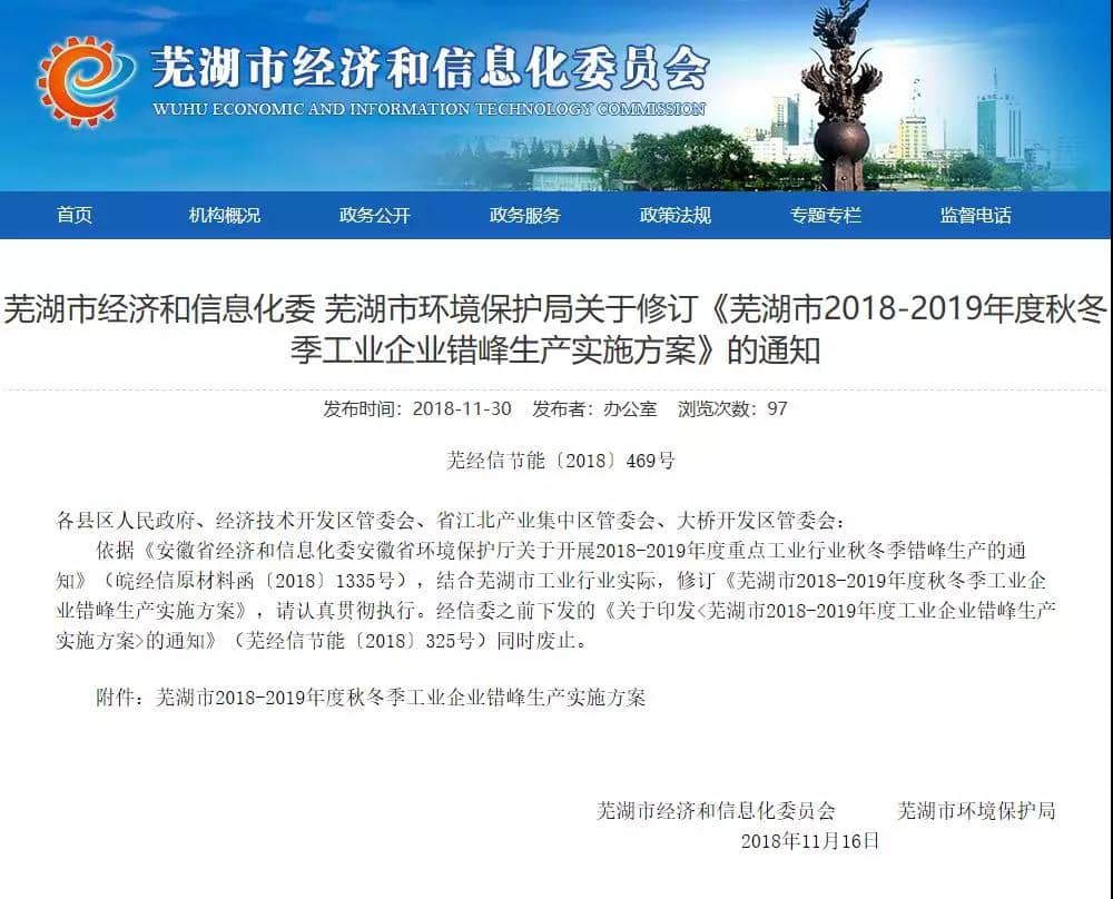 蕪湖市2018-2019年度秋冬季工業(yè)企業(yè)錯(cuò)峰生產(chǎn)實(shí)施方案