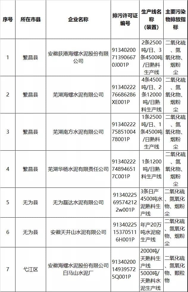 蕪湖市重點(diǎn)水泥行業(yè)企業(yè)(生產(chǎn)線)