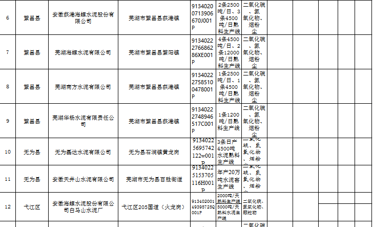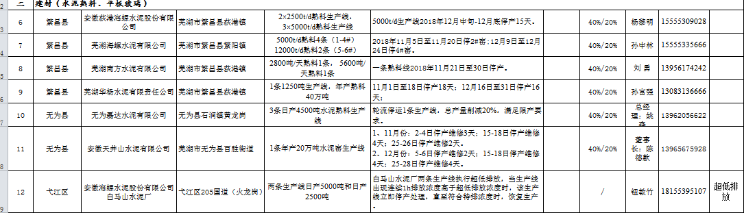 蕪湖 市2018~2019年重點(diǎn)行業(yè)冬季錯(cuò)峰生產(chǎn)企業(yè)(生產(chǎn)線)清單