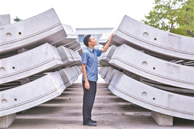 在廣州華穗威預(yù)制件有限公司位于番禺的生產(chǎn)基地,記者見到,相同承載力制成的梁截面對比實(shí)物, UHPC材料所制成的構(gòu)件截面尺寸接近于鋼結(jié)構(gòu)構(gòu)件,明顯小于預(yù)應(yīng)力砼和普通砼——能節(jié)省構(gòu)件占據(jù)的空間。