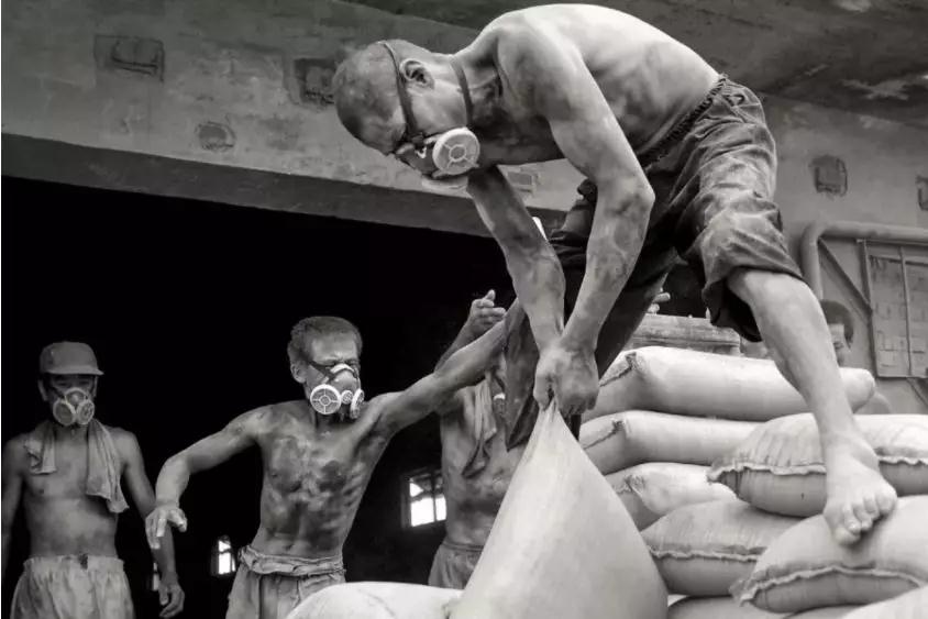 ▲2005年8月,從一個(gè)個(gè)裸身上的粉塵和口鼻上的防護(hù)罩,你就會(huì)想象到勞動(dòng)強(qiáng)度和環(huán)境對(duì)他們的侵蝕。