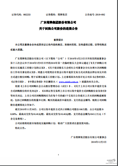 證券代碼:002233 證券簡稱:塔牌集團(tuán) 公告編號:2018-092