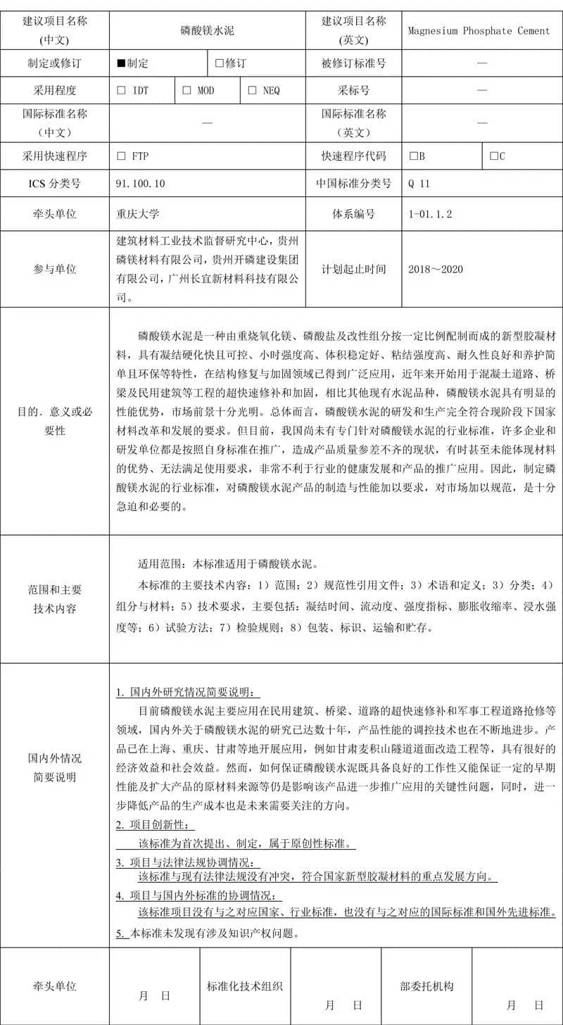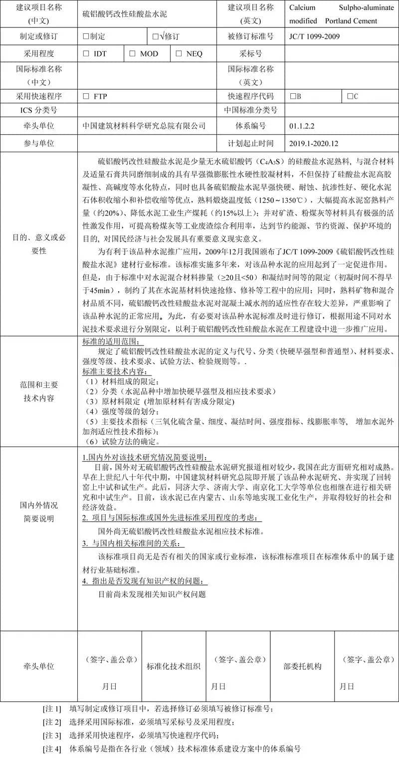 泥行業(yè)標準項目建議書