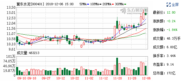 冀東水泥近三年突破年線記錄