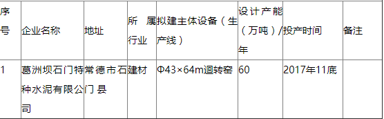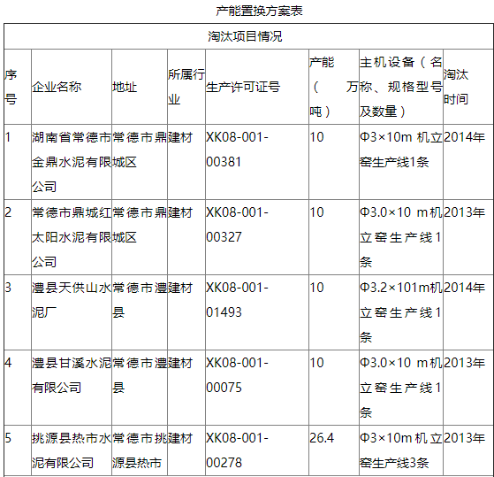 葛洲壩石門特種水泥有限公司年產(chǎn)60萬噸白色硅酸鹽水泥生產(chǎn)線技改項目產(chǎn)能置換方案已于2014年由常德市經(jīng)信委(常經(jīng)信[2014]54號)上報我委確認(rèn)(湘經(jīng)信產(chǎn)業(yè)函[2014]345號),但置換方案未予公示和公告。按照《國務(wù)院關(guān)于化解產(chǎn)能嚴(yán)重過剩矛盾的指導(dǎo)意見》(國發(fā)〔2013〕41號文件)要求,于2018年11月20日至11月29日,在我廳網(wǎng)站公示了葛洲壩石門特種水泥有限公司年產(chǎn)60萬噸白色硅酸鹽水泥生產(chǎn)線技改項目產(chǎn)能置換方案(見附表),公示期間無異議,現(xiàn)予以公告。