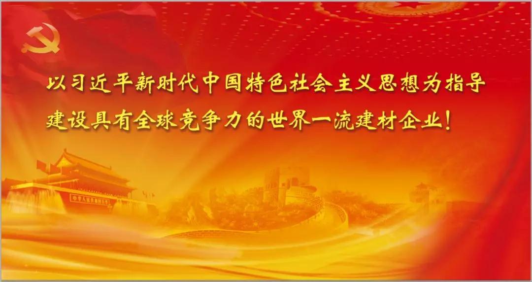 讓我們緊密團(tuán)結(jié)在以國家領(lǐng)導(dǎo)人為核心的黨中央周圍,高舉國家領(lǐng)導(dǎo)人新時代中國特色社會主義思想偉大旗幟,站在新時代新的歷史起點,恪守實業(yè)興國的本心初心,聚焦“世界一流”目標(biāo),圍繞“三大戰(zhàn)略”“三條曲線”,秉持“善用資源、服務(wù)建設(shè)”的核心理念,不忘初心、牢記使命,堅定信念、砥礪前行,努力為建設(shè)具有全球競爭力的世界一流建材企業(yè)而努力奮斗!