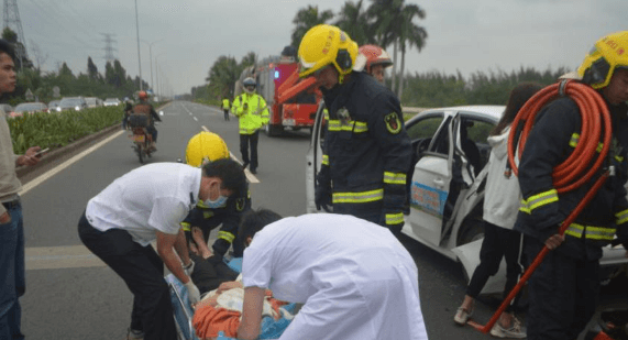 15時(shí)30分,消防員到達(dá)現(xiàn)場。此時(shí)發(fā)生事故的水泥車正靠邊停著,水泥車前面的一輛教練車,車尾碰撞痕跡明顯,車身變形。經(jīng)了解,兩車是發(fā)生了追尾造成碰撞,教練車車廂后排位置有1名女子受重傷被困,無法動彈,120醫(yī)護(hù)人員也已經(jīng)先給受傷女子進(jìn)行輸液,而教練車上其余4人也受了輕傷,已自行下車等待救助。了解現(xiàn)場情況后,消防員迅速展開救援工作,利用液壓破拆工具組將車門打開,約10分鐘后,消防員將受重傷女子成功救出,并交由120醫(yī)護(hù)人員送往醫(yī)院進(jìn)一步救治。