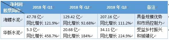 從2018年前三季度的整體業(yè)績(jī)來(lái)看,海螺水泥、華新水泥的業(yè)績(jī)呈現(xiàn)遞增態(tài)勢(shì),并保持高速增長(zhǎng),建議投資者予以關(guān)注。