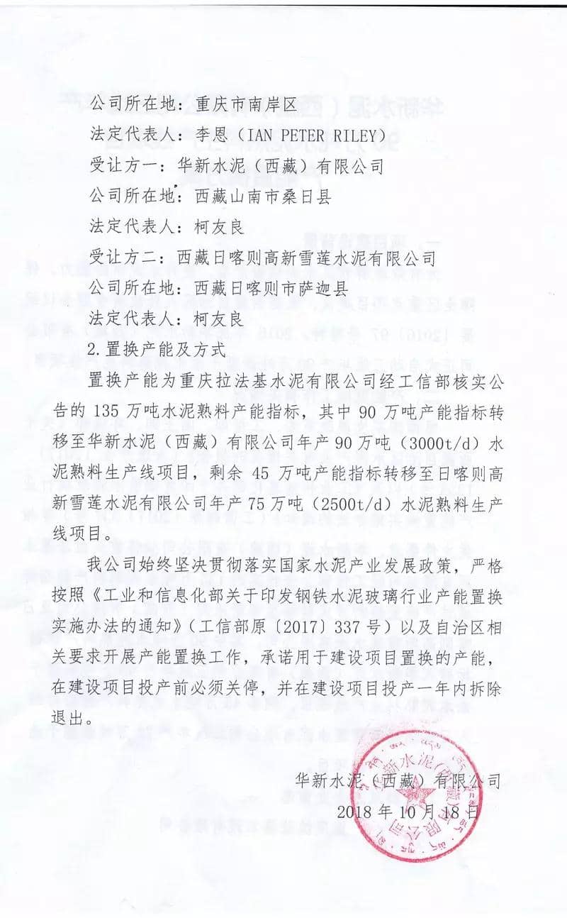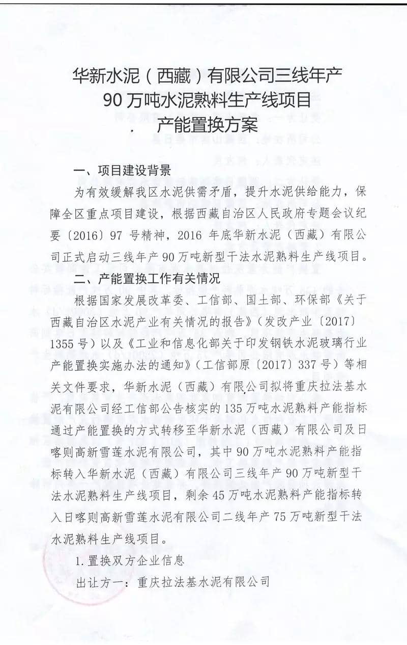 華新水泥(西藏)有限公司產(chǎn)能置換方案