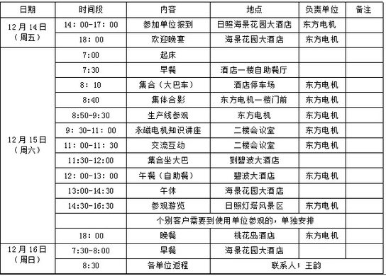 1、住宿費、餐飲費,大巴車租賃費均由日照東方電機有限公司承擔;