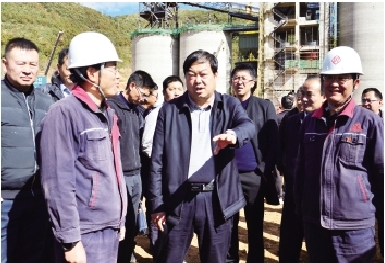 楊健在賓川縣紅塔滇西水泥股份有限公司認真了解項目建設(shè)情況。
