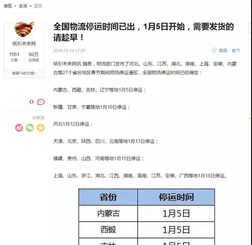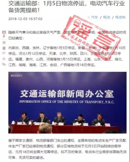 中國互聯(lián)網(wǎng)聯(lián)合辟謠平臺提醒大家,物流公司放假或是運輸線停運并非由政府部門統(tǒng)一規(guī)定,而是公司根據(jù)情況自行決定。物流公司會通過官網(wǎng)、微信公號或是發(fā)通知函等方式告知客戶。所以,消息中提及的“電動車行業(yè)商家”無需擔(dān)心“物流停運”而不知!至于普通快遞,網(wǎng)友問問片區(qū)的快遞員,就知道什么時候不收快遞了!(張智萍 張景云)