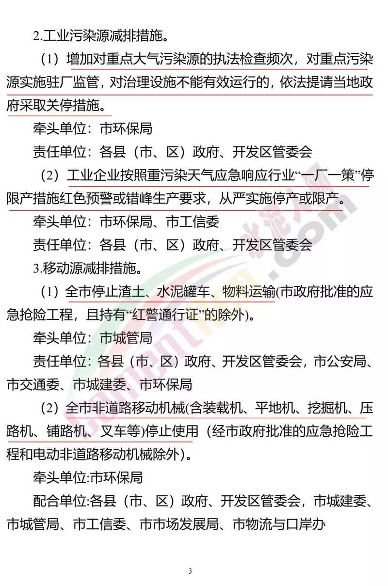 移動污染源減排措施。全市停止渣土、水泥罐車、物料運輸; 全市非道路移動機械(含裝載機、平地機、挖掘機、壓路機、鋪路機、叉車等)停止使用;全市鋼鐵、建材等涉及大宗物料運輸?shù)闹攸c用車企業(yè),原則上不允許柴油貨車進出廠區(qū)